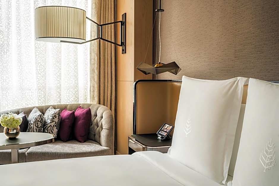 Each Superior Room is outfitted with wood-clad walls with metal pendants, creating a warm and welcoming atmosphere. A spacious living area features a curved sofa, coffee table, desk and 45-inch LCD TV. Business travelers are sure to enjoy the room’s modern amenities, such as an iPad Mini and motorized drapes, which creates total darkness for a good night’s sleep in your custom Four Seasons Bed.
